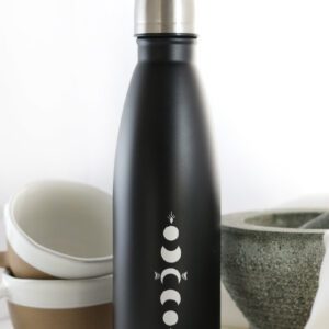 MY Bottle, fra Moonchild, er en smuk designet vandflaske med de velkendte månefaser samt en lækker matte-finish. Vandflasken er produceret af fødevaregodkendt rustfrit stål med dobbeltvæg-isolering, som sikre dit vand er koldt i op til 24 timer eller varmt i optil 12 timer. Den er nem, at genopfylde og genbruge, så du også er med til, at reducere behovet for engangsplastikflasker.